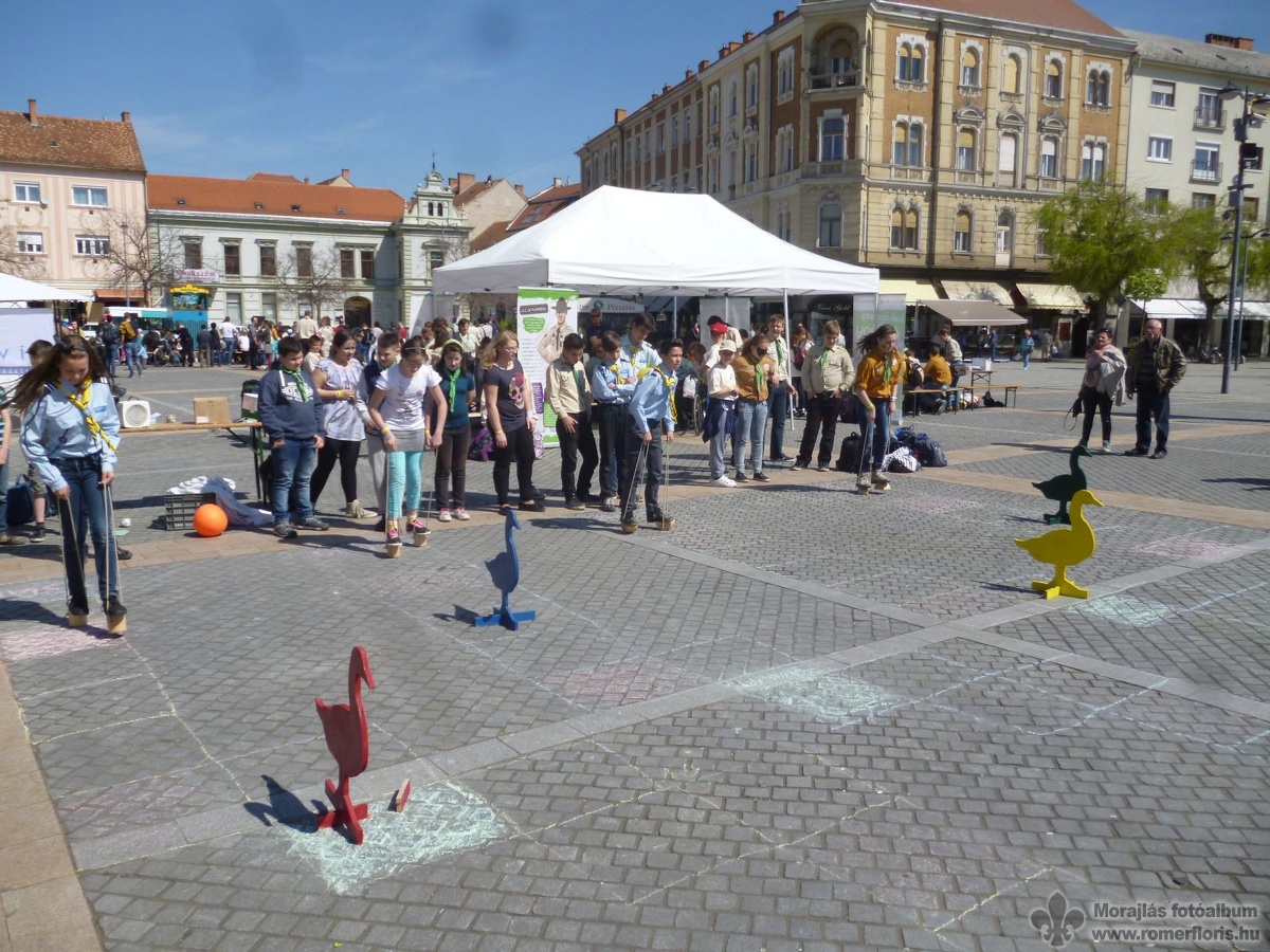 Naplóbejegyzés: A szombathelyi cserkésznapon vettünk részt, amit a cserkészek védőszentjének, Szent György napjához legközelebbi szombaton rendeztek. 25 cserkésszel vettünk részt a csapatból, de a kerület minden részéből érkeztek cserkészek. A Fő téren volt kézműveskedés, koncertek, néhányan Jákra mentek biciklivel, volt falmászás, volt az Iseumban is program, betekinthettünk a Székesegyház kulisszái mögé és este a csillagvizsgálóban is jártunk. |